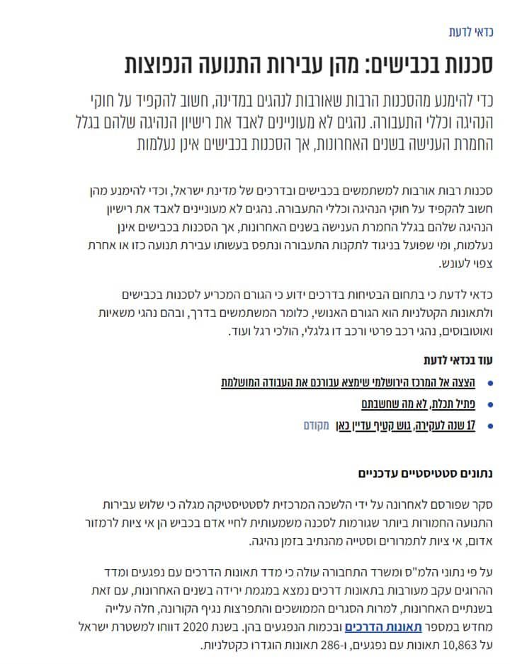 תחום התעבורה נגזר מהמשפט הפלילי. עבירות התעבורה הן שימוש בכלי רכב מנועי בניגוד לכללי התנועה. יש חשיבות להבחנה בין תחום עבירות התעבורה או בחינת כשירות נהיגה במכון הרפואי לבטיחות בדרכים לבין המונח "תאונות דרכים".